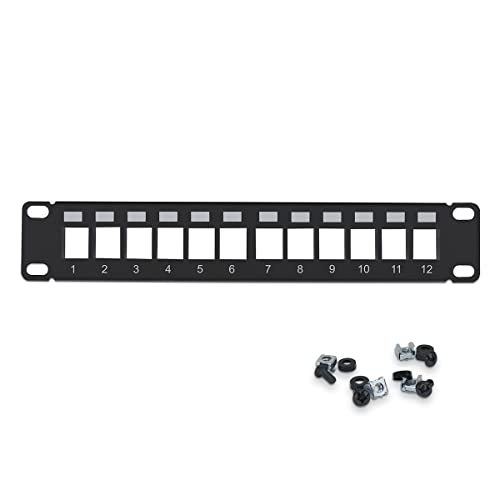 Stalflex Panneau de Brassage Standard 10 Pouces 1U - 12 Créneaux Keystone Baie de Brassage - Fabriqué en Acier - Keystone RJ45 Seulement - Racks pour Ordinateur et Serveur