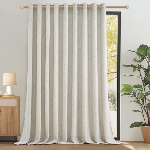 MRTREES Rideaux Salon Rideau Voilage Grande Largeur Semi-Transparent Rideau Voile Effet Lin Passe Tringle pour Maison Fenetre Baie Vitrée Chambre Adulte L 300 x H 240 CM, Lin Naturel, 1 Pièce