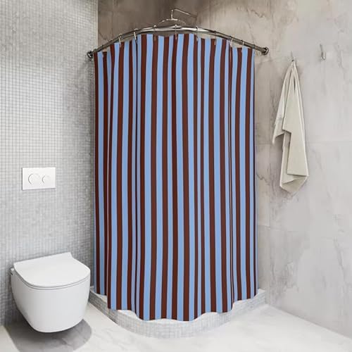 NXMYDBD Rideau de Douche à Rayures Verticales Bleues et Marron, Rideau de Bain imperméable en Polyester avec Crochets, décoration pour Baignoire 130(W) x(H) 140cm