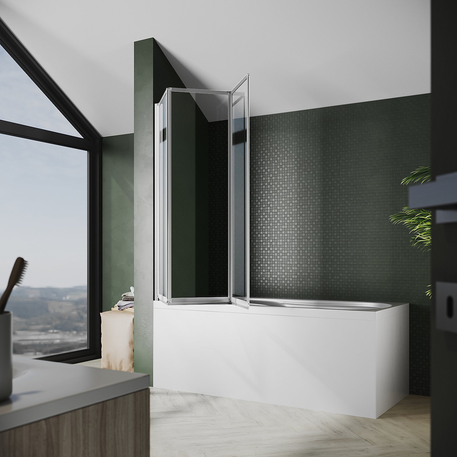 AICA pare-baignoire 110cm à 2 volets pliants Hauteur de 140cm écran de douche pivotant en verre clair trempé