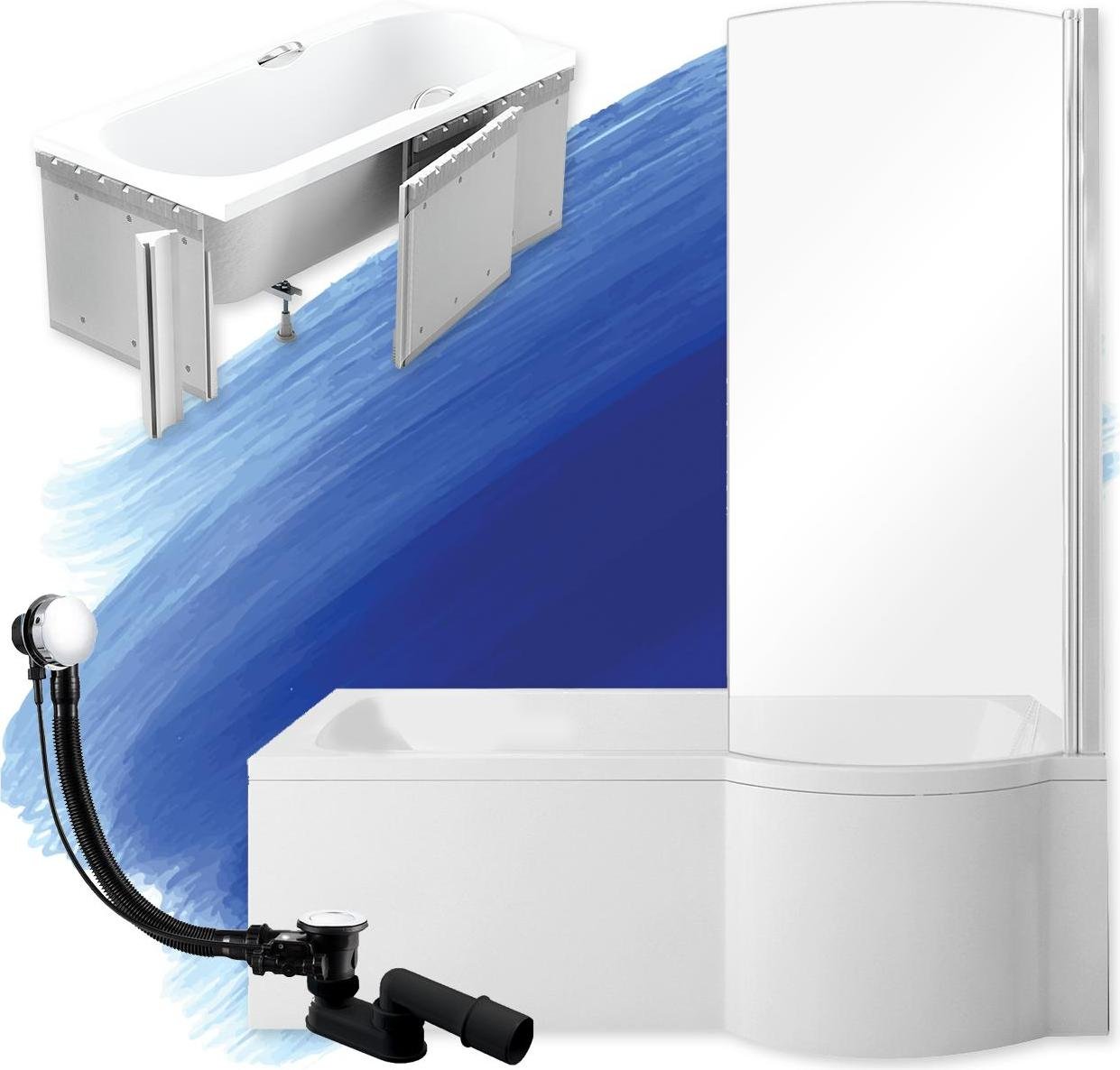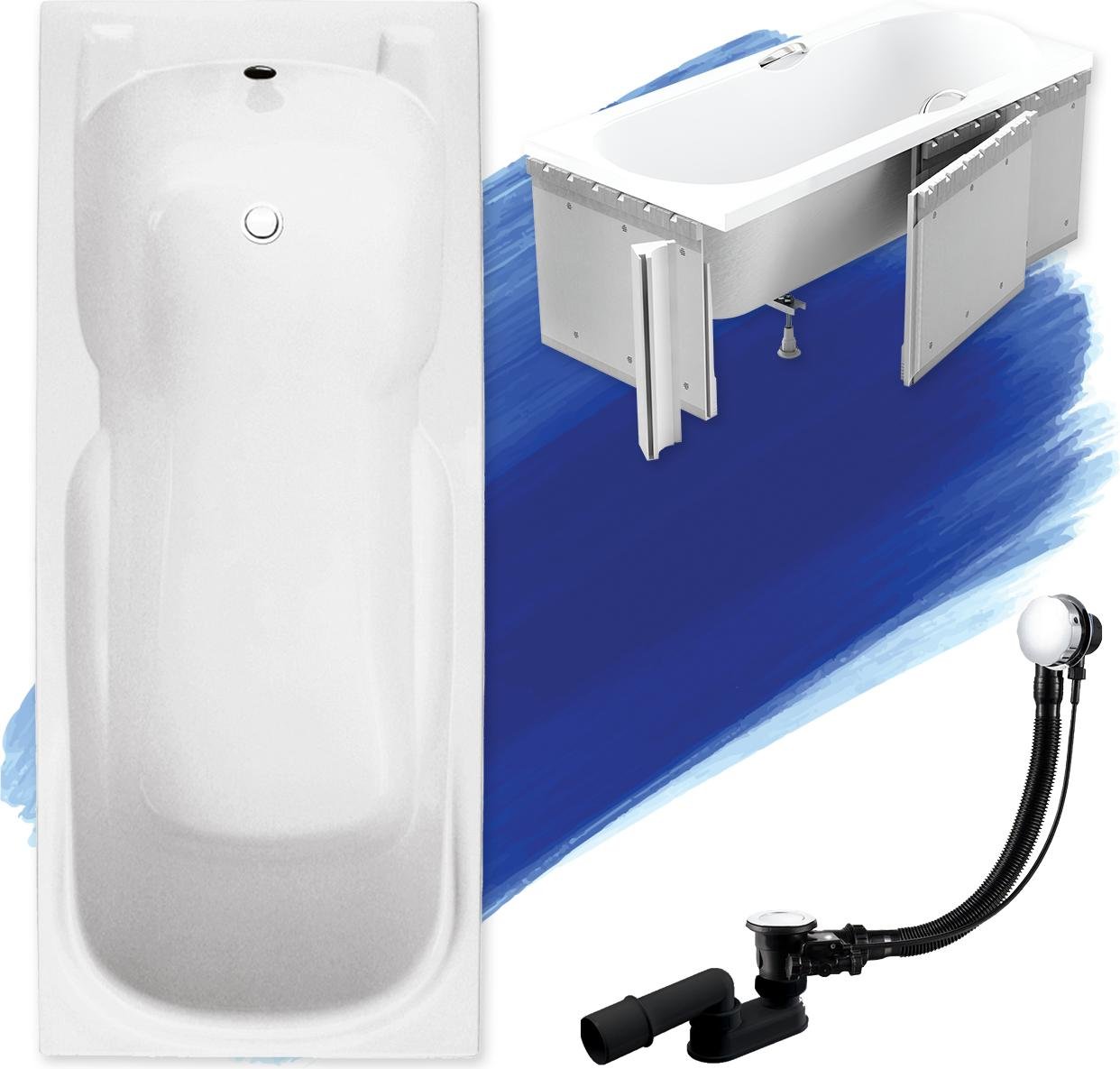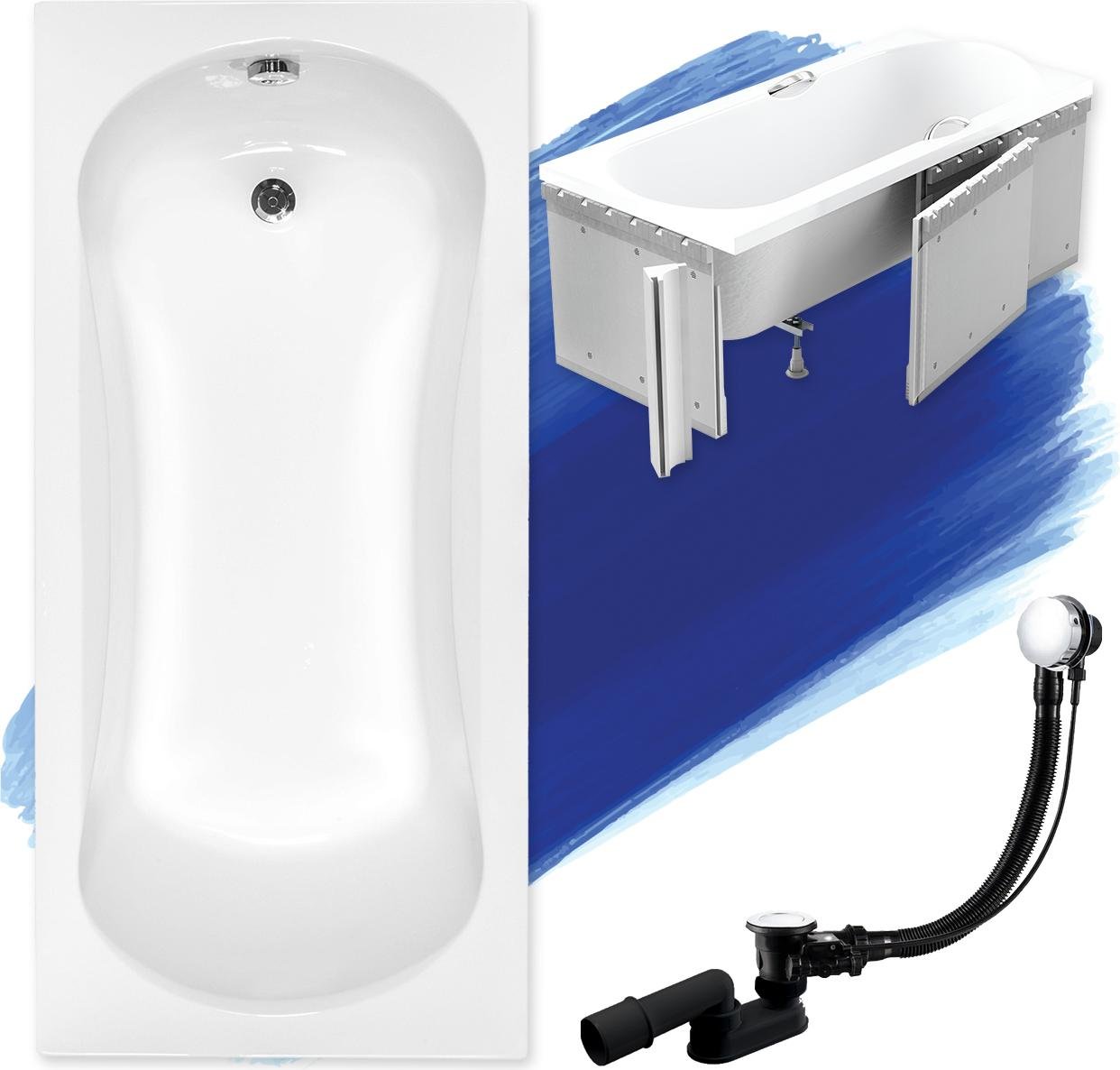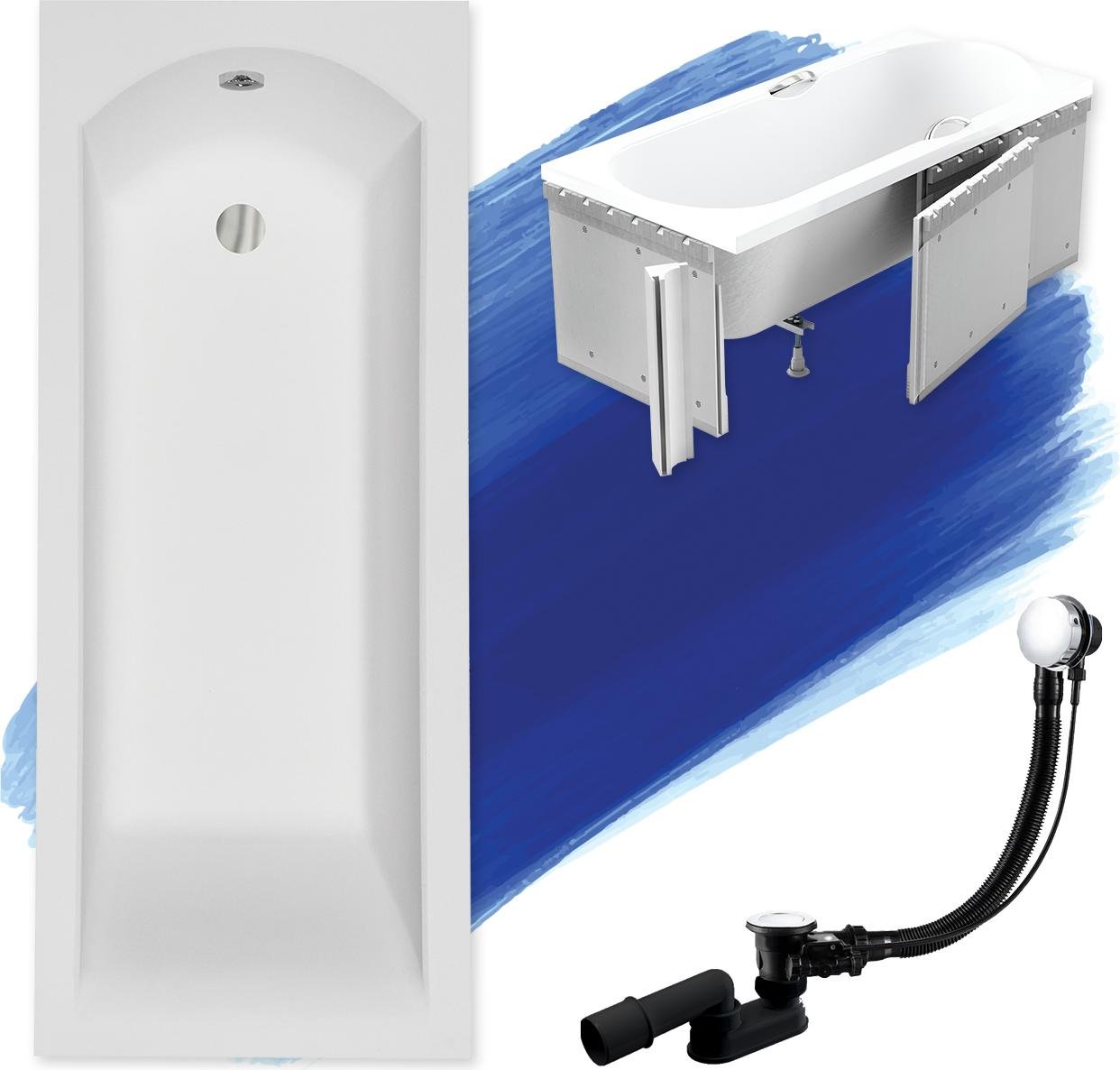 Bain, 170 cm, Rektangel, Baignoire intégrée
