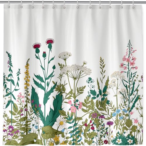 ANHOPE Rideau de Douche Vintage Botanique Plante Fleur Imperméable Tissu Polyester Anti Moisissure Lavable Rideaux de Douche avec 12 Crochets pour Salle de Bain Baignoire 180 x 180 cm