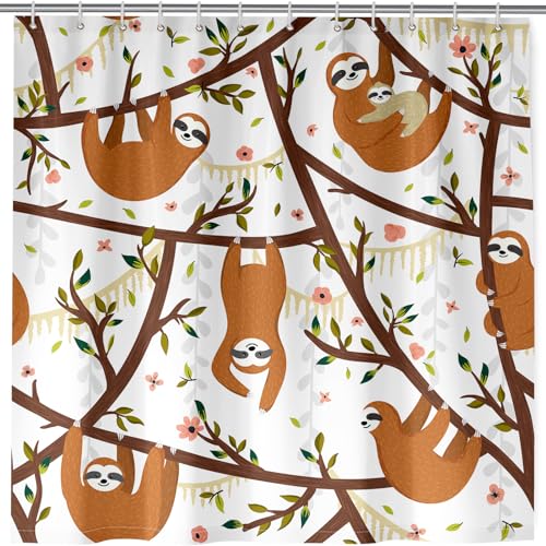 ANHOPE Rideau de Douche Jungle Animaux Paresseux Anti Moisissure Imperméable Lavable Tissu Polyester Rideaux de Douche avec 12 Crochets pour Salle de Bain Baignoire 180 x 180 cm