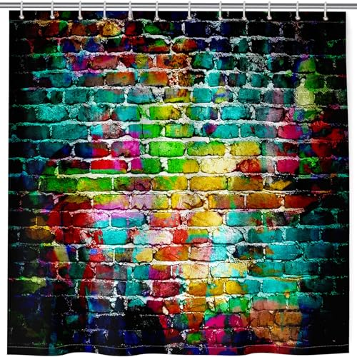 ANHOPE Rideau de Douche Coloré Brique Mur Graffiti Tissu Polyester Anti Moisissure Lavable Imperméable Rideaux de Douche avec 12 Crochets pour Salle de Bain Baignoire 180 x 180 cm