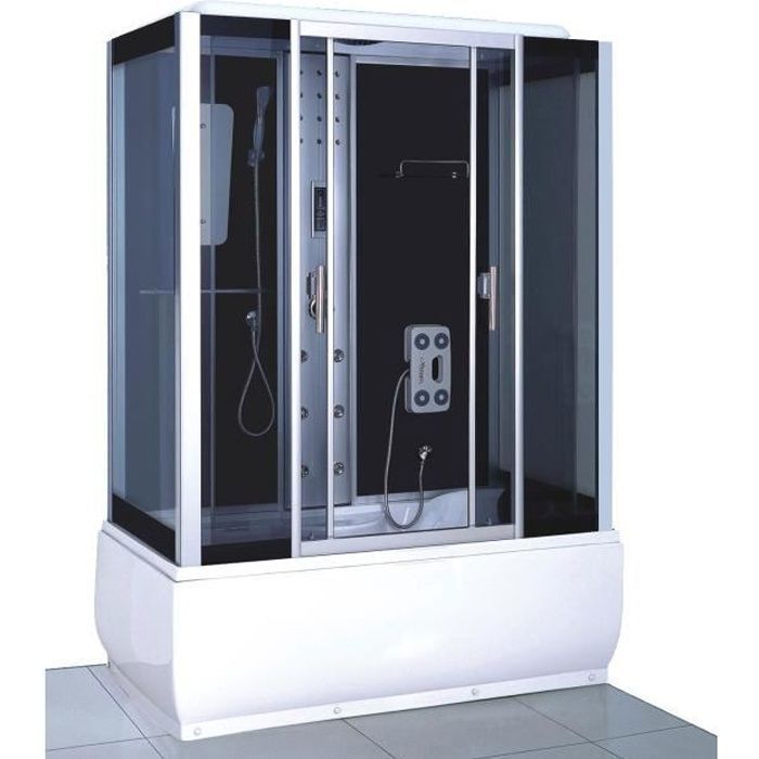Baignoire balnéo douche - Vienna - 130x130cm - Chromothérapie - Noir - Pour 2 personnes