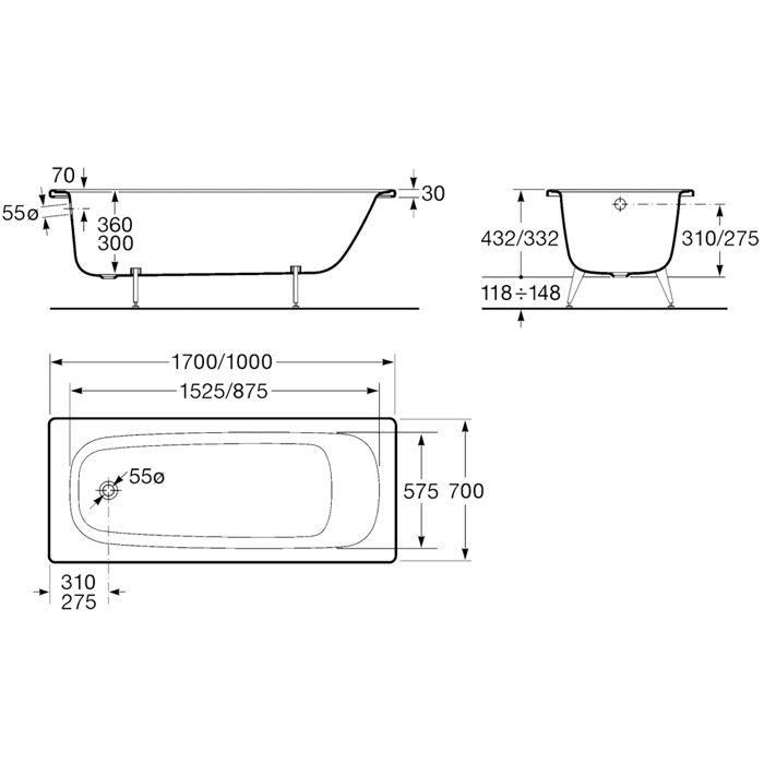 Baignoire acier émaillé 160x70