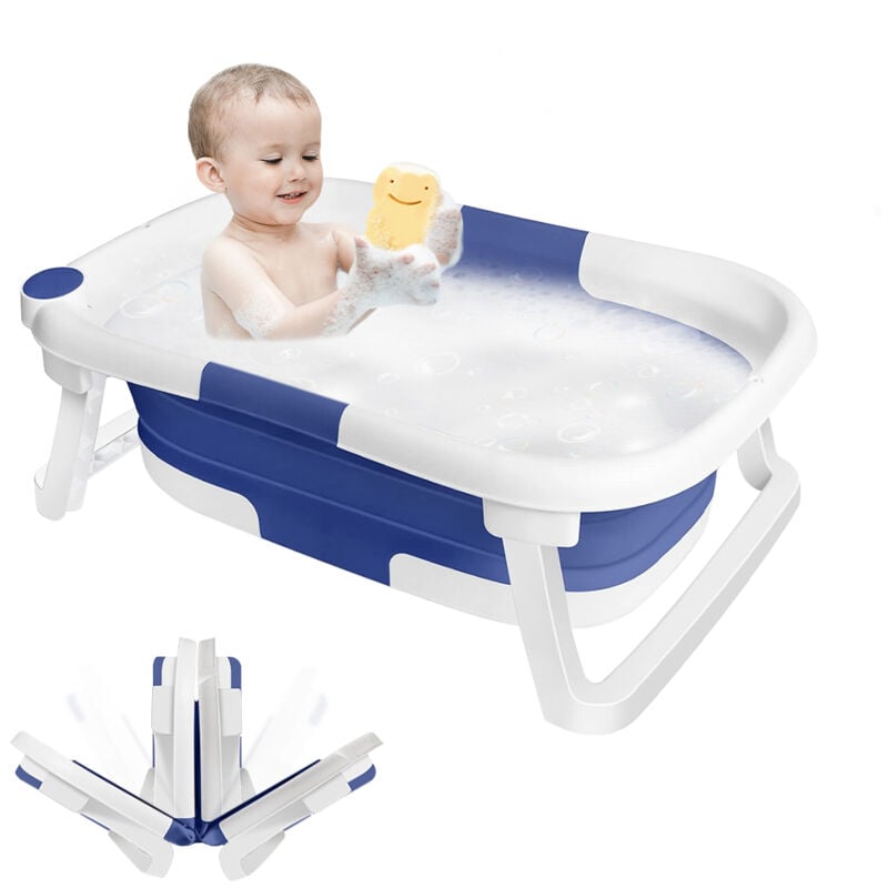 Dazhom - Bébé Baignoire Pliable avec Pieds Portable Antidérapant pour 0-6 ans bébé bleu