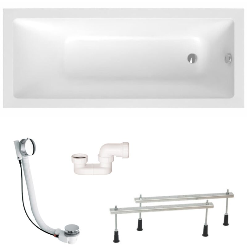 Siko - 170 x 70 cm Cube Way Plus baignoire rectangulaire avec pieds, Acrylique, Gauche et Droite, Blanc (CUB1700PLUS-SET)