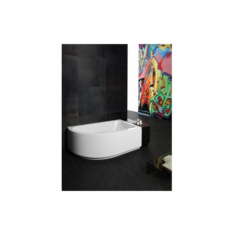 Baignoire asymétrique droite 160x100 – 100% acrylique – Capacité 265 L – Fond renforcé pour durabilité – Livrée avec pieds réglables – Glass