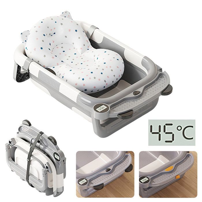 Baignoire Bébé Pliable avec Thermometre Digital Coussin De Bain et Pieds Antidérapants Bébé-Baignoire Enfant Pour Nouveau-Né