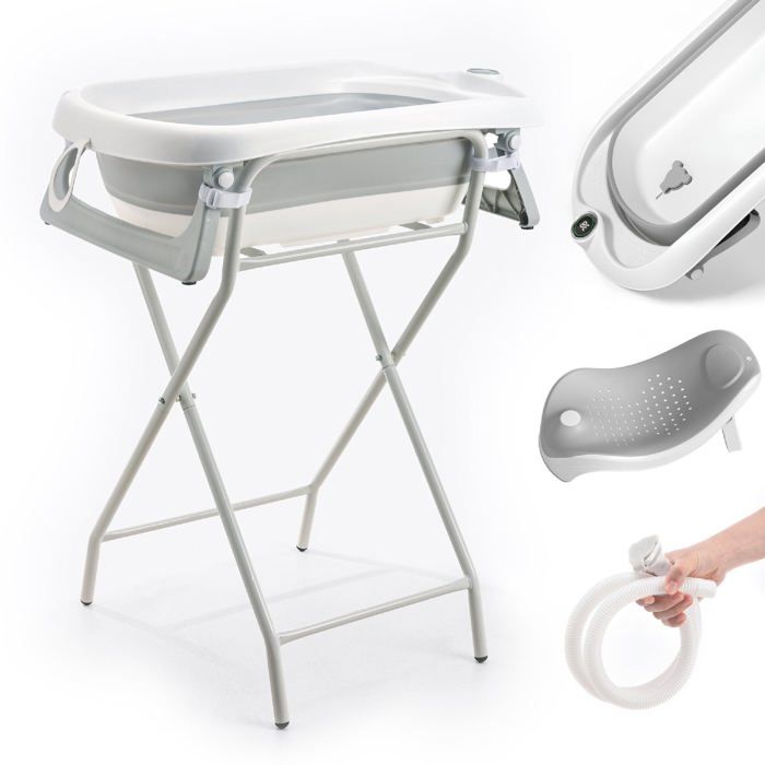 Baignoire bébé pliable sur pied – Avec support thermomètre 2.0 siège et kit de drainage – Dès La Naissance SUPERBE BEBE