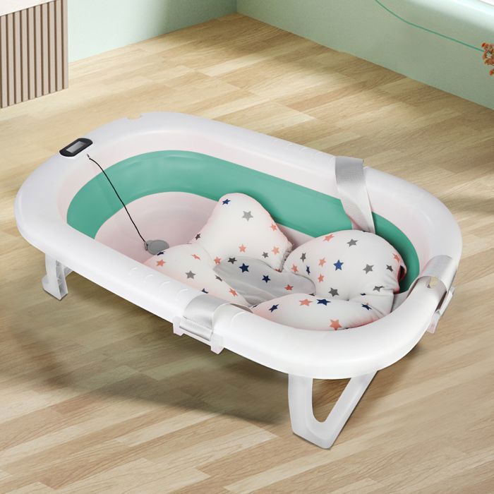Baignoire Bébé Pliable Evolutive - XUANYU - Avec Coussin de bain avec Thermomètre - Vert - 76*45*18 cm