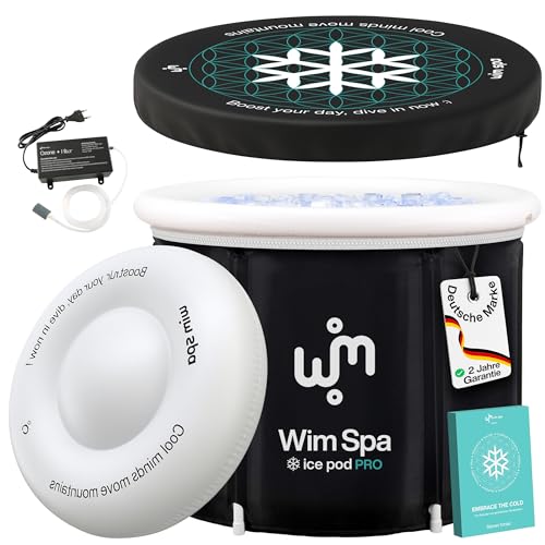 Wim Spa Ice Pod Pro (90 × 75 cm) [L'original depuis 2015] – Fût à glace pliable et isolé avec filtre à ozone, ThermoDome, thermomètre, eBook etc., pour thérapie par le froid mobile, baignoire pour