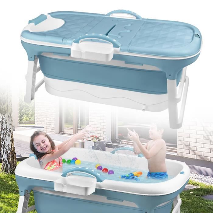 Baignoire bébé Baignoire pliable pour adulte Mobile Baignoire portable avec couverture rouleaux plateau 118x60x50cm