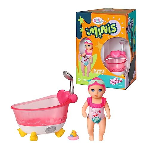 BABY born Minis Set avec baignoire & Amy 906101 - Poupée de 6,5 cm avec accessoires exclusifs et 1 corps mobile pour un jeu réaliste - Convient aux enfants de 3 ans et plus