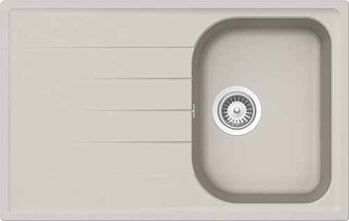 SCHOCK | Évier de cuisine Lithos D100S 1 petite baignoire avec goutteur, baignoire réversible, matériau Cristalite®, gris taupe, 790 x 500 mm