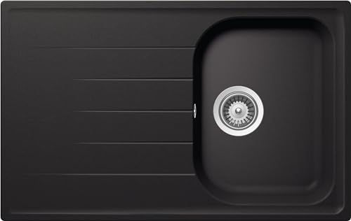 SCHOCK | Évier de cuisine Lithos D100S 1 petite baignoire avec goutteur, baignoire réversible, matériau Cristalite®, noir absolu, 790 x 500 mm