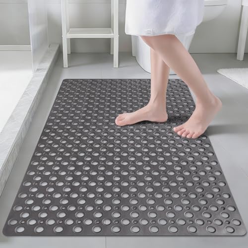 Lurowo Tapis de Douche Antidérapant, Grand Tapis de Bain Carré 60 * 90cm avec Ventouses, Tapis de Baignoire Antibactérien Lavable pour la Douche, Baignoire (Gris A)