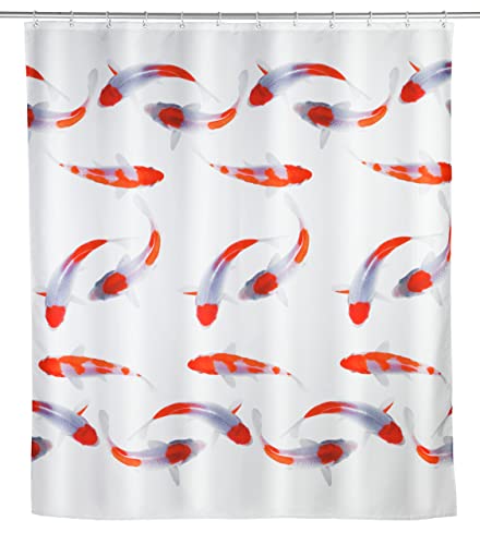 WENKO Rideau de douche Nagoya, 180x200 cm, rideau 100% polyester avec œillets métalliques & bande de lest en caoutchouc pour la douche et la baignoire, hydrofuge & lavable, 12 anneaux blancs inclus