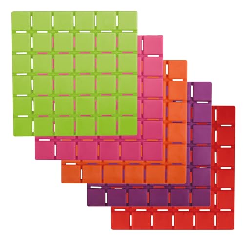 MSV - Lot de 5 Tapis Antidérapants pour Douche ou Baignoire - Caoutchouc Quadro - 13 x 13 cm - Couleurs Chaudes - Sécurité et Confort pour Toute la Famille