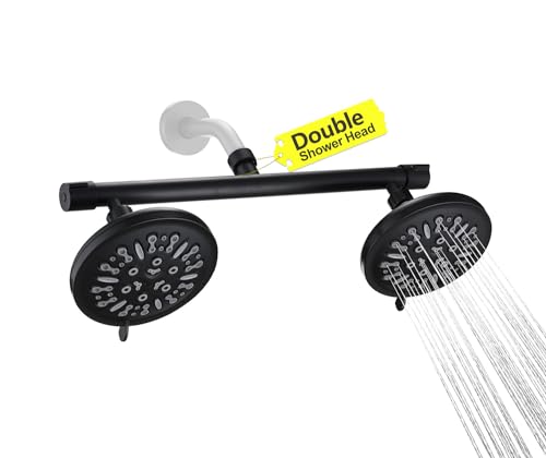 Pommeau de douche double avec 2 valves d'arrêt intégrées, haute pression 8 réglages, parfait pour les couples dans la salle de bain à l'italienne ou les célibataires dans la baignoire – Noir mat