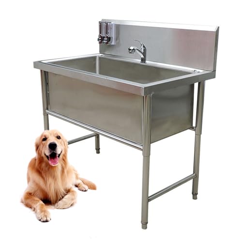 wanghaiyanBD Station de lavage pour chien, baignoire de toilettage en acier inoxydable avec robinet et boîte à savon, accessoires inclus, baignoire pour animaux de compagnie pour chiens de petite