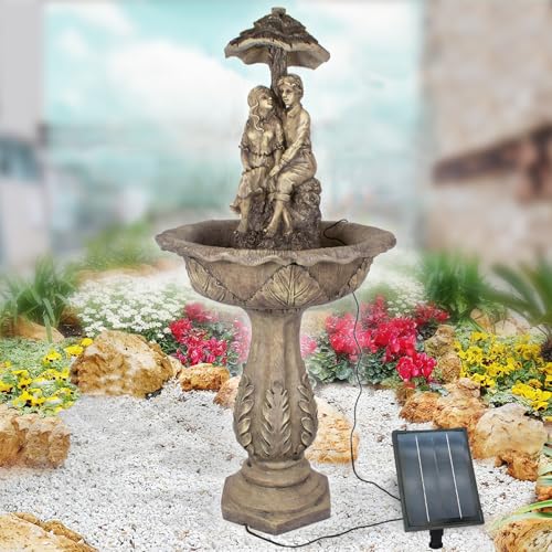 Fontaine de Jardin Solaire Fontaine Bain d'oiseau Décoration de Jardin avec Pompe, Jeu d'eau pour Jardin, terrasse, Balcon
