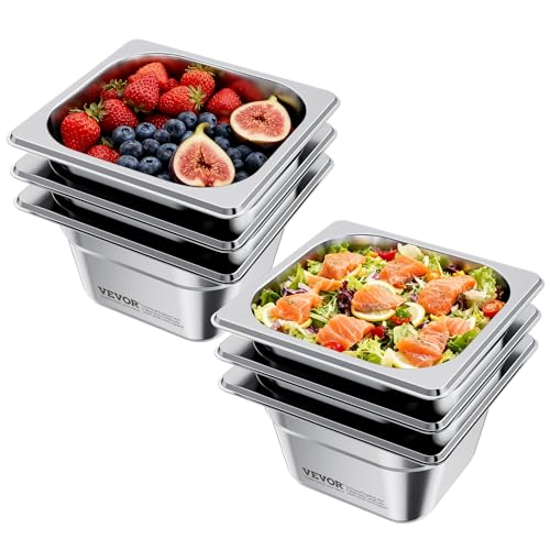 VEVOR Bac Gastronorme GN 1/2, Récipient de Restauration en Acier Inoxydable 6PCs 6 L, Bac Inox Alimentaire Profondeur 9,9 cm, Anti-adhérent et Antirouille, pour Bain-marie Buffet Chauffe-plats Hôtel