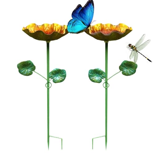pour Oiseaux avec Un Piquet | Statue Abreuvoir en 2 Pièces en Forme De | Bain pour Oiseau en métal Jardin avec Bol d'eau - pour Colibris Abeilles Papillons Jardin Et Cour Arrière-Cour Pelouses Patio