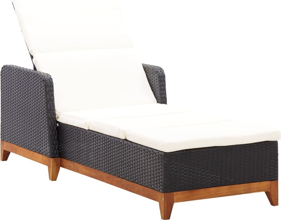 Meubles Bain de soleil Poly rotin et bois massif Acacia Noir - Bains de soleil de jardin 46012
