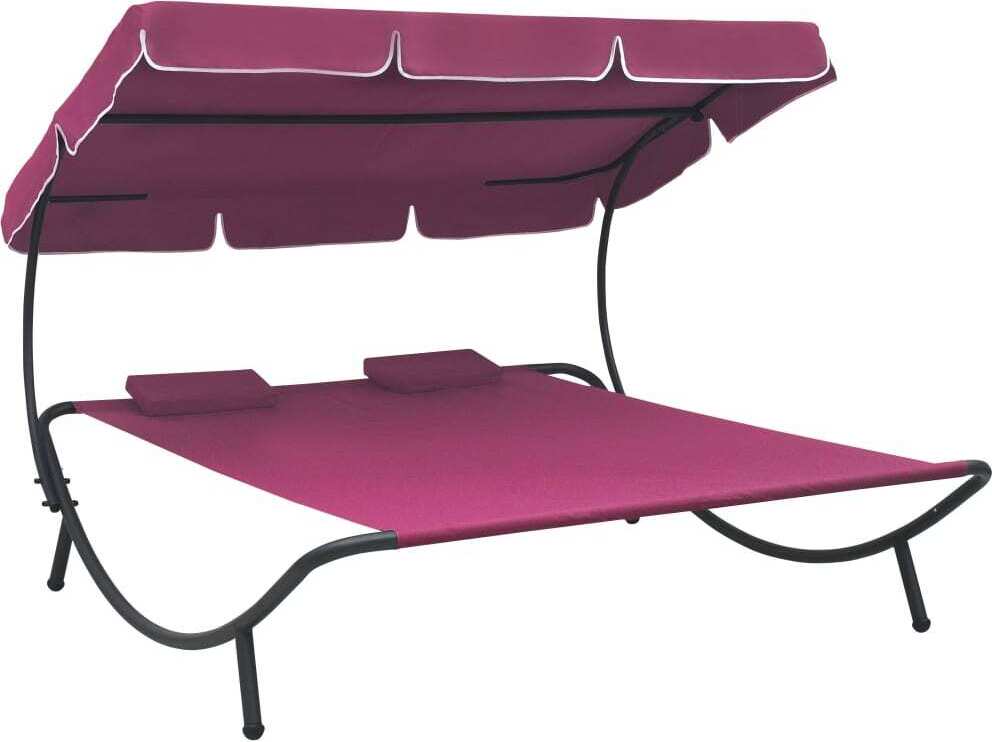 Bain de soleil simple avec toit solaire et coussin Rose - Bains de soleil de jardin FR6992764 1parcel