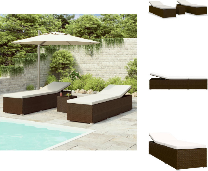 vidaXL 3 pcs. Bains de soleil de jardin avec table de thé Poly rotin brun - Bains de soleil