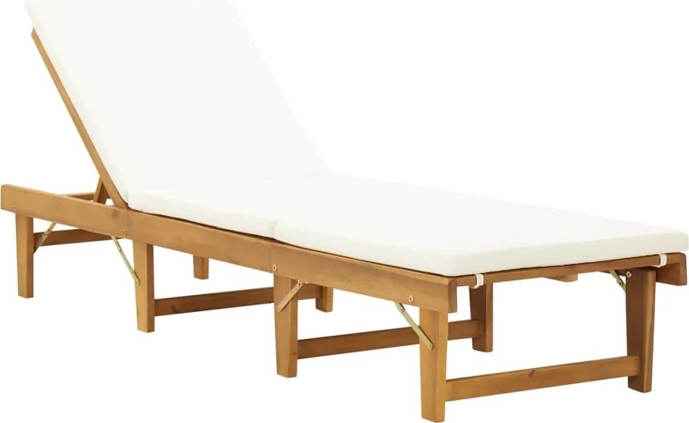 Bain de soleil pliable avec support en bois massif d'acacia blanc crème , Bains de soleil de jardin Design 2024