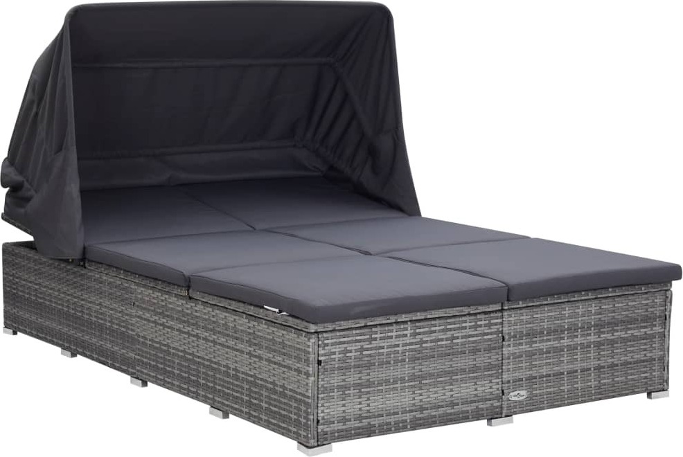 vidaXL Bain de soleil avec toit pliant noir rotin 200x114x128 cm 46156
