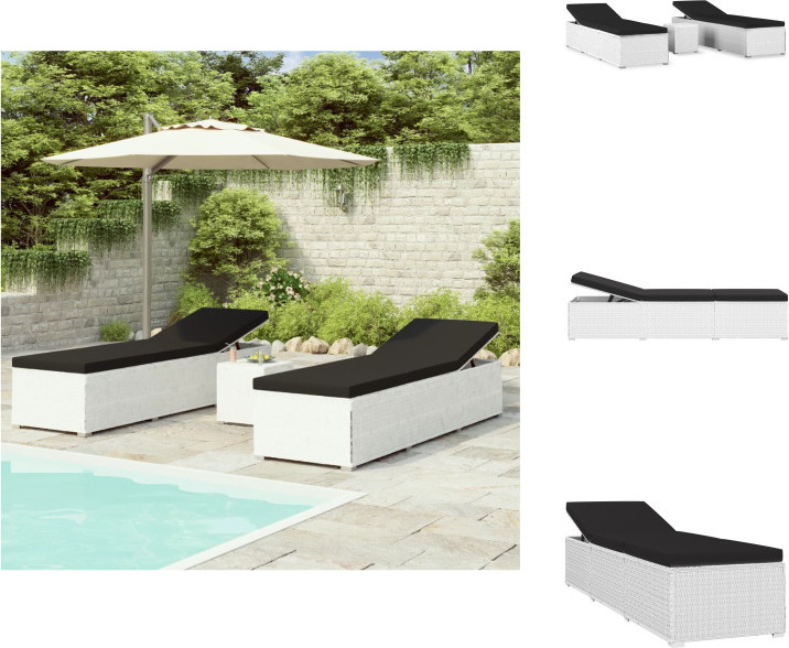 vidaXL 3 pcs. Bains de soleil de jardin avec table de thé Poly rotin blanc - Bains de soleil