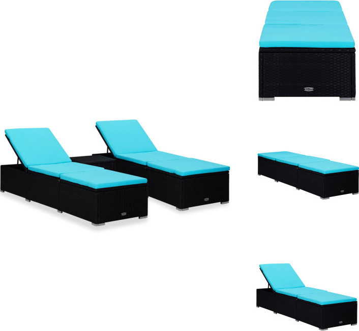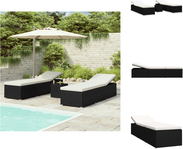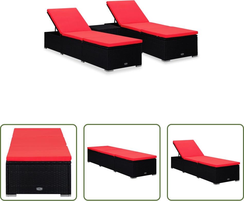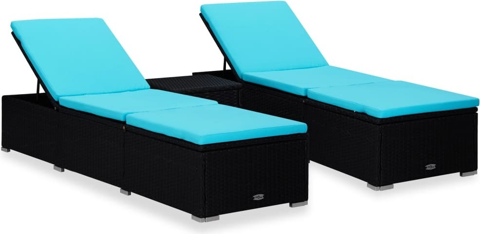 vidaXL 3 pcs. Bains de soleil de jardin avec table de thé Poly rotin noir - Bains de soleil