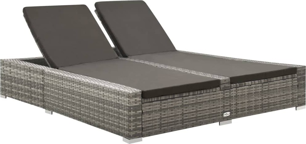 Bain de soleil double en poly rotin gris , Bains de soleil de jardin Design 2024