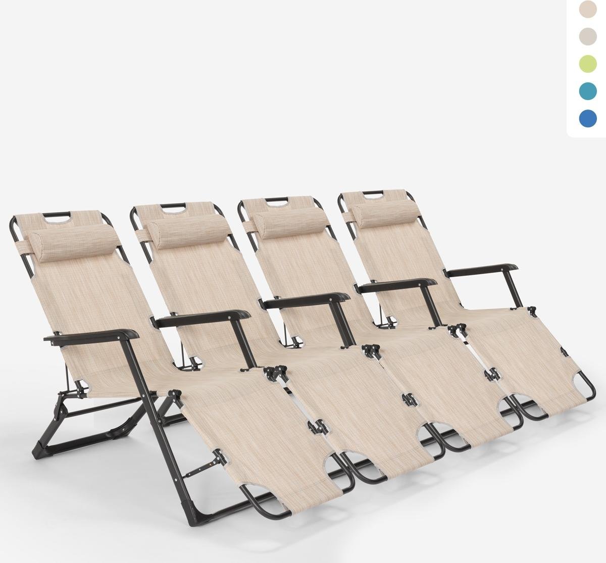 lot de 4 chaises longues de plage Bains de soleil pliables pour jardin Emily Lux Zero Gravity - Beige