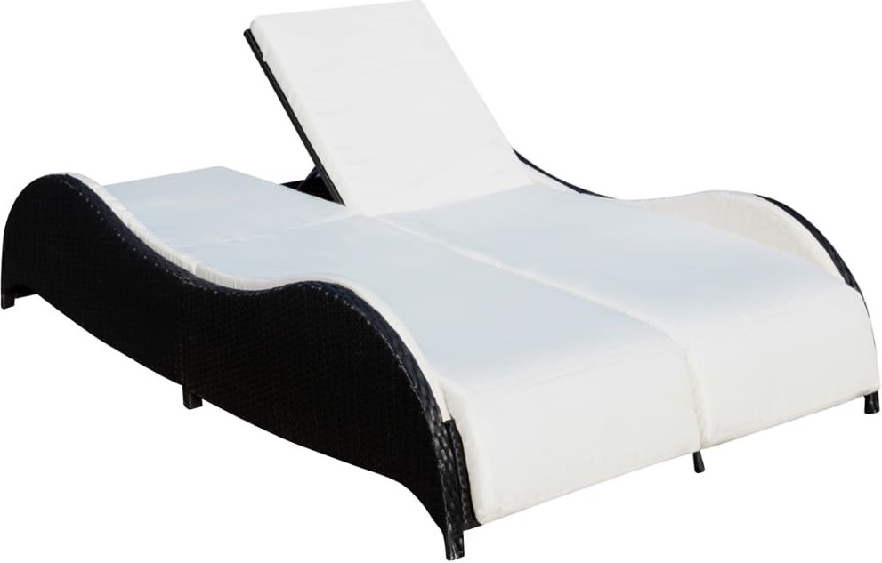 vidaXL Bain de soleil pour 2 personnes avec coussin noir polyrotin 46238