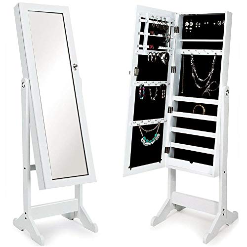 BAKAJI Genève Miroir à bijoux avec porte porte-objets, armoire à bijoux, blanc