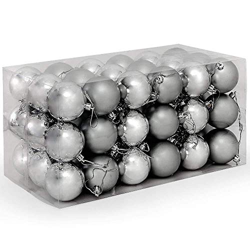 BAKAJI Lot de 54 Boules de Noël avec Surface Brillante et Mate, diamètre 6 cm, décorations pour Sapin de Noël (Argent)
