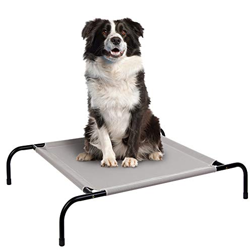 BAKAJI Lit lit surélevé pour Chiens et Chats - Structure Tubulaire en métal - Revêtement en Tissu Teslin - Dimensions 110 x 80 cm - Gris et Noir