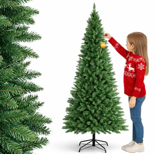 BAKAJI Sapin de Noël Super touffu New (TF) Vert écologique PVC, Base de Croix en Fer, Branches à Crochet, Aiguilles Anti-Chute, très épais (210 cm (1038 Branches))