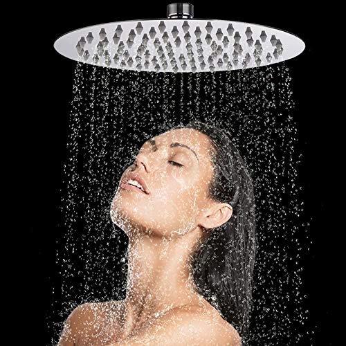 BAKAJI Pommeau de Douche Rond en Acier Inoxydable Ultra Fin avec Buses en Silicone de 5 mm, argenté, 20 x 20 cm, Multicolore, Unique