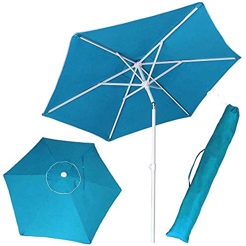 BAKAJI Parasol de plage de jardin avec poteau en acier pliable, revêtement en tissu anti-UV, diamètre 210 cm, avec bandoulière étui, turquoise, Ø 210 cm