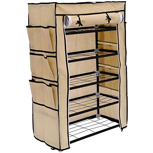 BAKAJI Armoire à chaussures à 6 étages, 60 x 30 x 90 cm, jusqu'à 18 paires de chaussures, structure en acier et revêtement en tissu TNT imperméable avec fermeture éclair anti-poussière (beige)