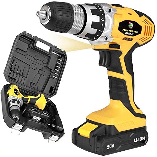 Bakaji Power Tools Perceuse visseuse à double batterie au lithium en coffret 20 V sans fil double vitesse avec LED Light Work, mandrin autoserrant Poignée ergonomique, Set de 13 embouts inclus
