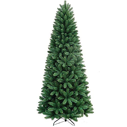 Bakaji Sapin de Noël Slim très épais Nouvelle Version pin de rêve écologique et Ignifuge avec Base en Croix en Fer Pliable Ouverture étoile Verte (210 cm)