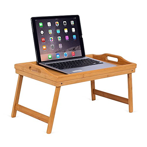 BAKAJI Table Pliante en Bambou Naturel 55 x 33 x 24 cm
