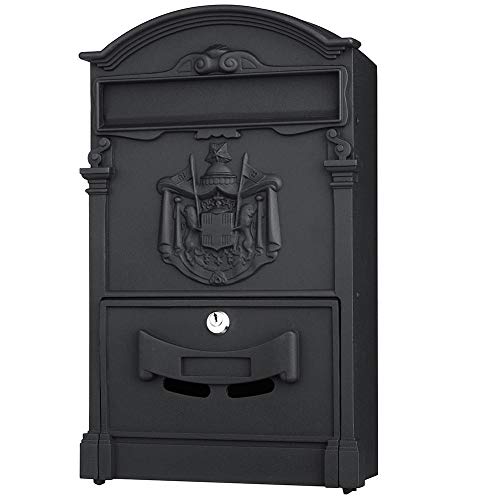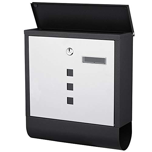 Bakaji Boîte aux lettres murale en acier inoxydable avec fermeture clé et porte journale (blanc noir)